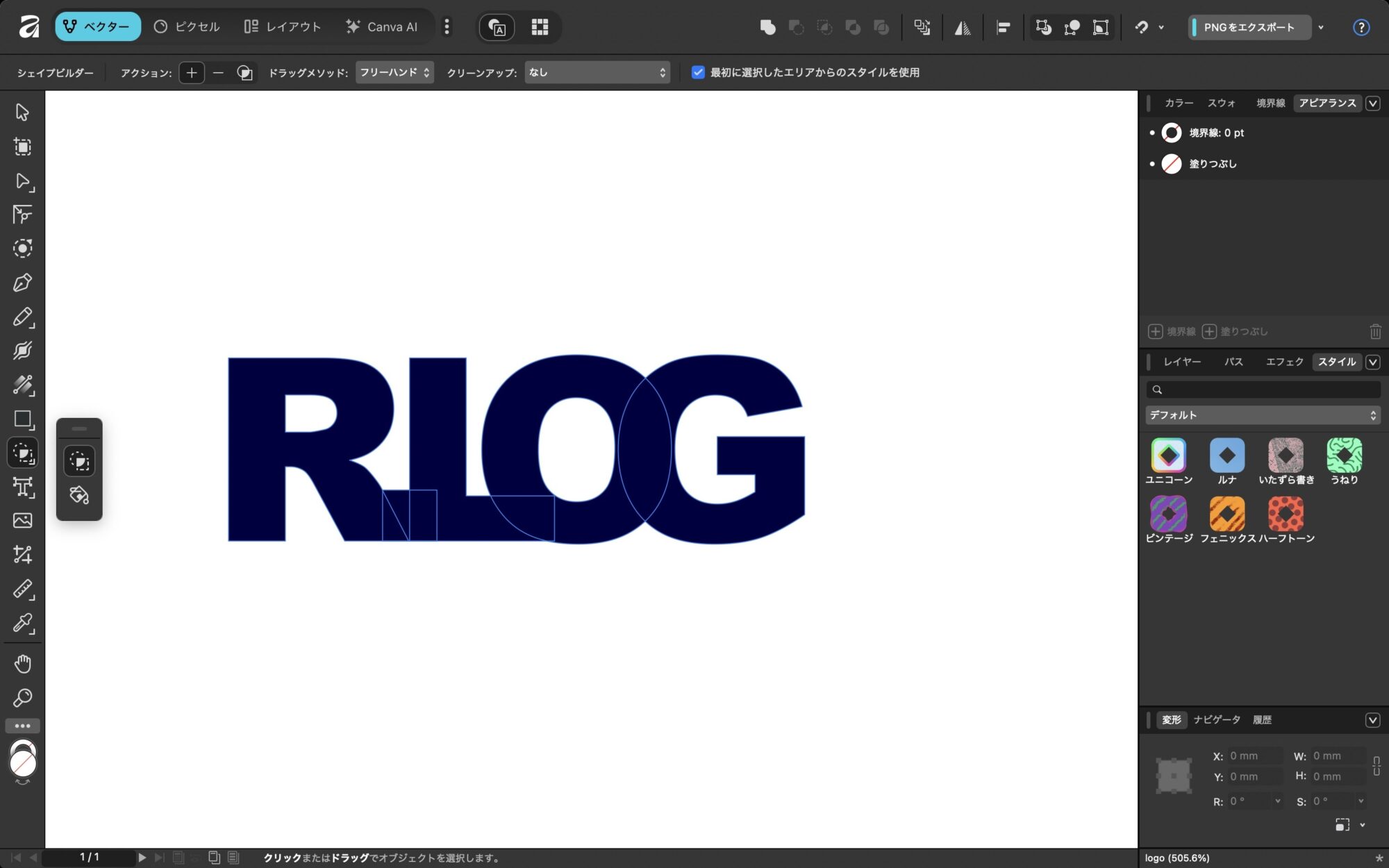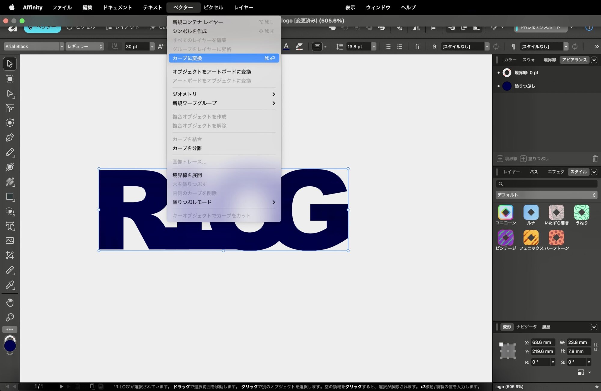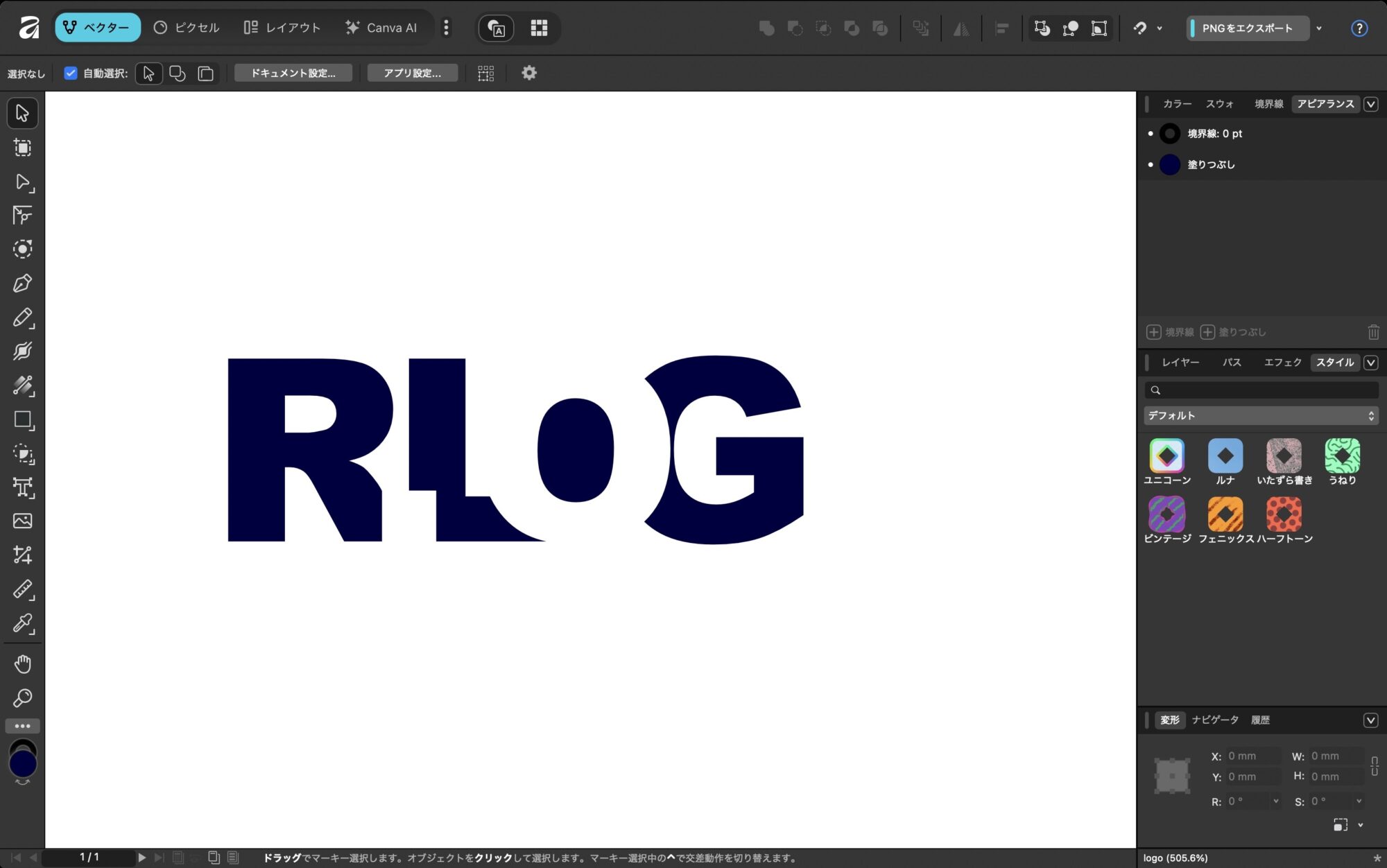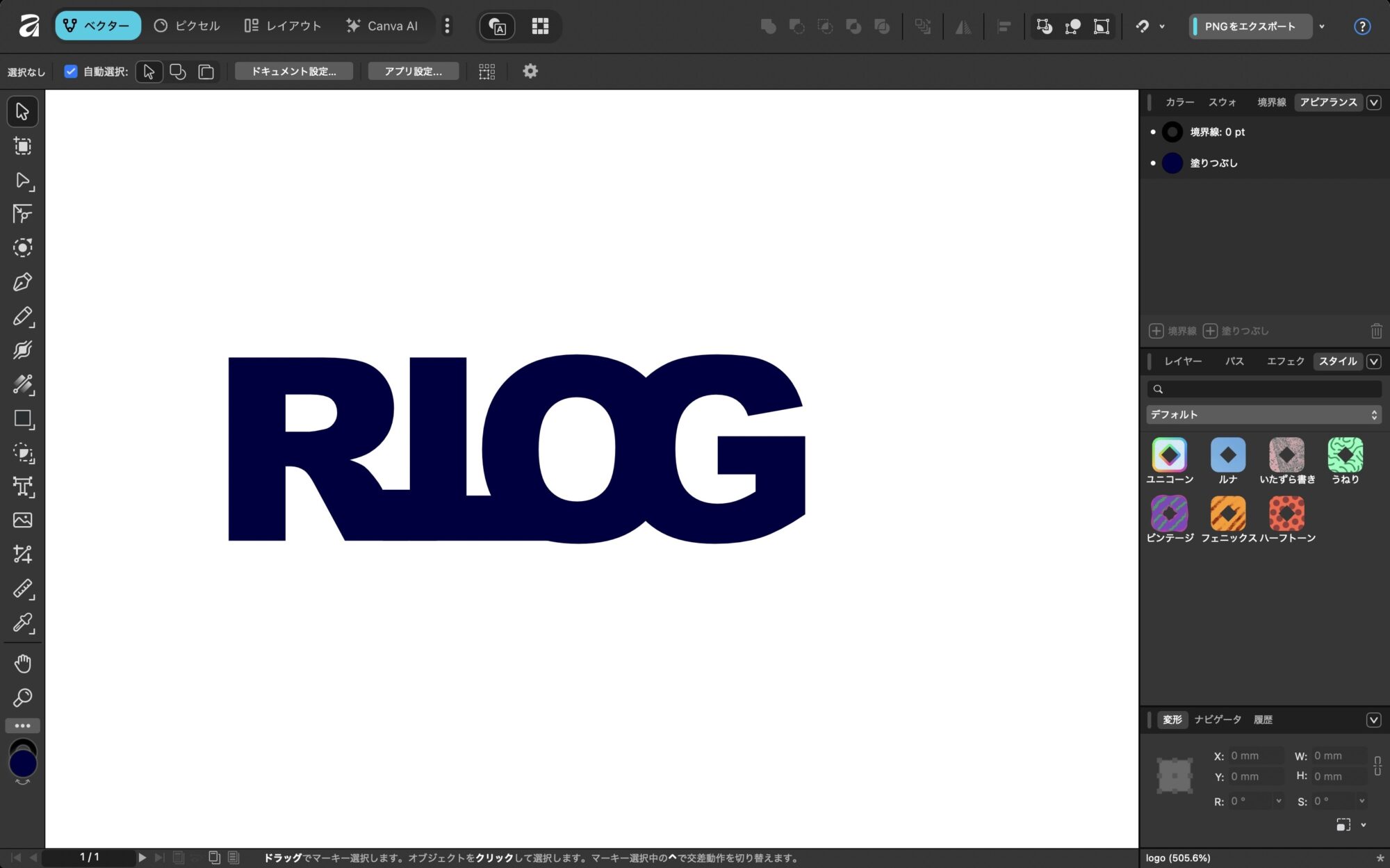 まずは触ってみようということでIllustratorで作ったこのブログのロゴをAffinityで作ってみました。