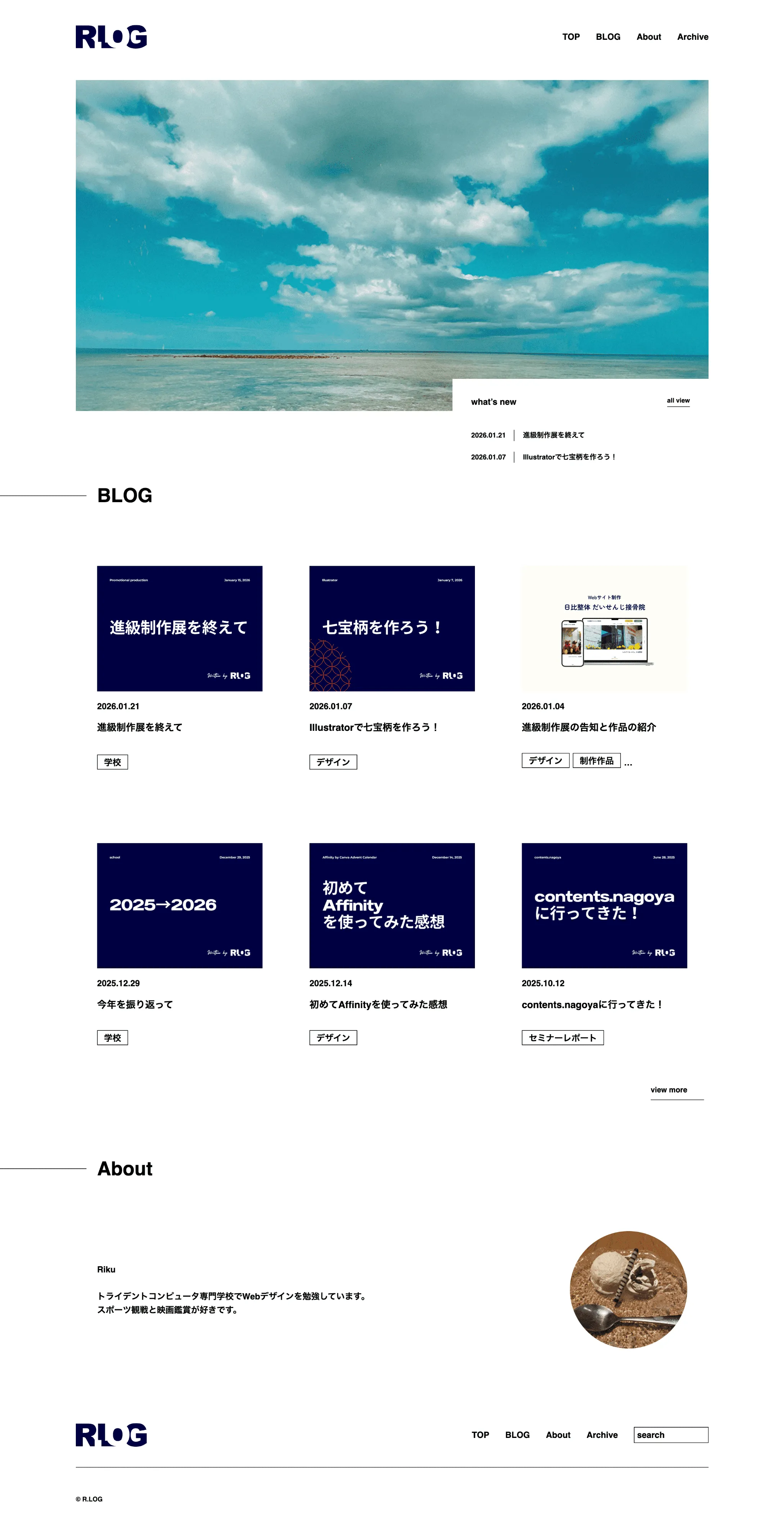 1年生前期の集大成として制作したブログサイトです。 デザインからコーディング、WordPressの実装までを一貫して行いました。