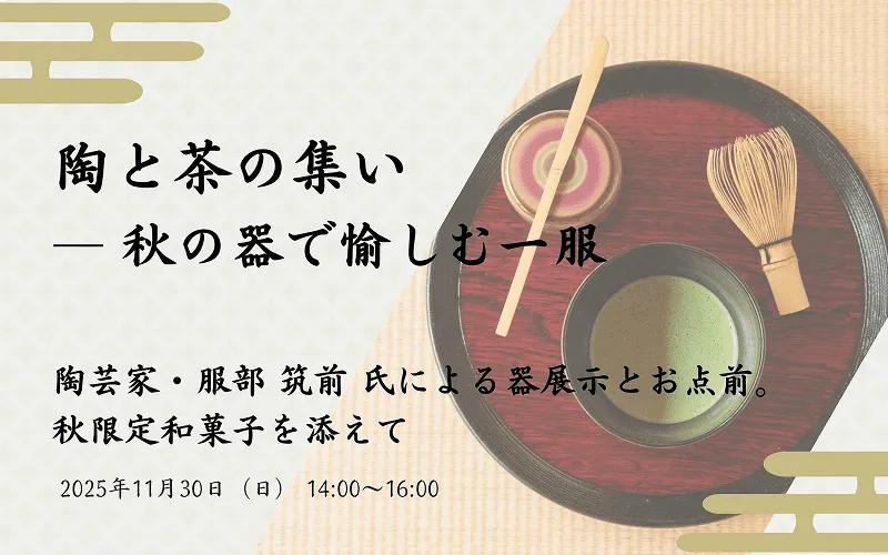 抹茶や茶道具の写真を使用し、落ち着いた和の雰囲気を表現しました。 背景には和柄を取り入れ、 装飾には和風の雲のモチーフを使用することで、日本らしい空気感を演出しています。