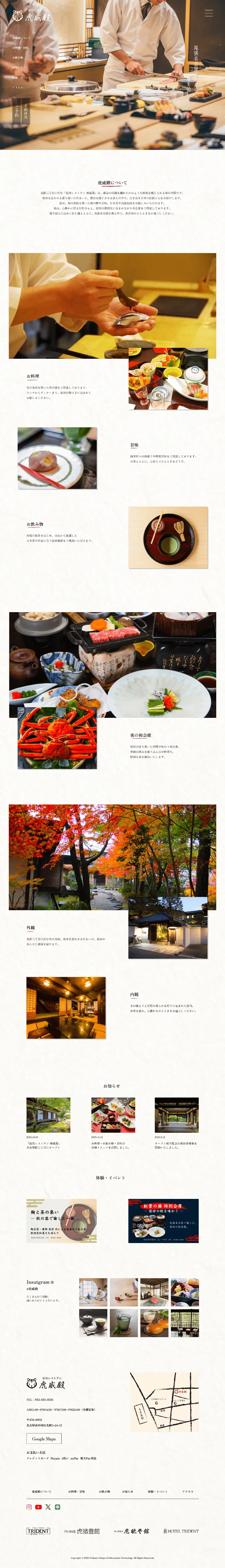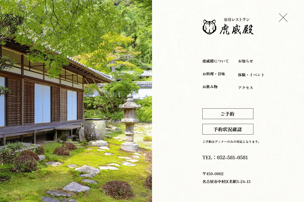「和風らしさ」をテーマに架空の宿坊レストラン「虎威殿」のサイトデザインを行いました。